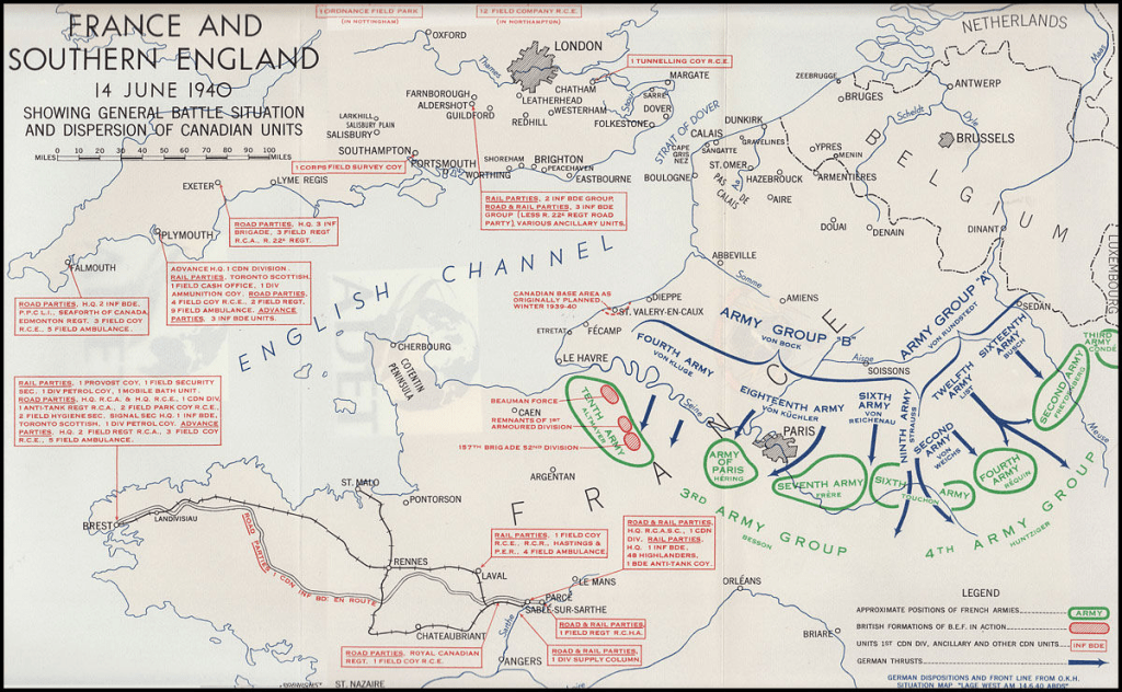 The situation on 14 June 1940. (Official History of the Canadian Army in the Second World War, Vol 1.)