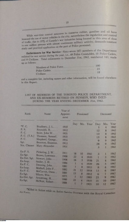 Police Constable 100, Toronto Police Department | Pilot Officer, Royal Canadian Air Force
