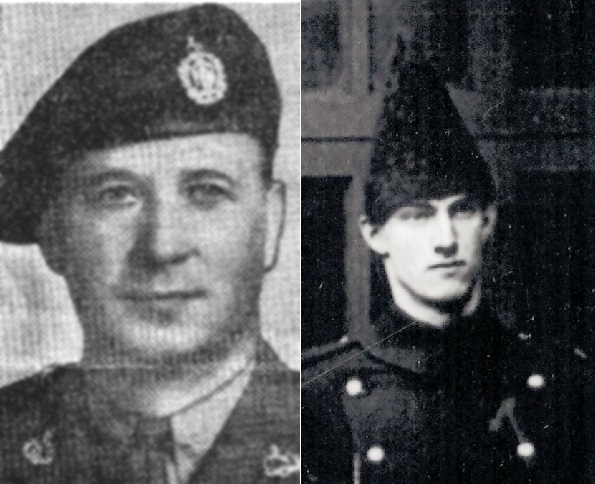 Patrol Sergeant Harry Lee Smuck, in military uniform (Canadian Virtual War Memorial), and Constable (#302) Clarence Verdun Courtney in winter dress (1938 Toronto Police Recruit Class Photo– Author’s Collection).